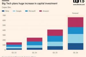 金融時報昨日(2 月 6 日)發布博文,報道稱為爭奪 AI 霸權,亞馬遜、谷歌、微軟和 Meta 宣布今年(2026 年)資本支出將達到 6600 億美元(IT之家注:現匯率約合 4.58 萬億元人民幣),較 2025 年激增 60%,是 2024 年支出的兩倍多。