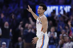 談及像今天給以賽亞·喬做后衛擋拆這種雷霆常用的戰術,他適應得如何。麥凱恩表示:“高中時我也打過三后衛陣容,經常做擋拆順下 / 滑出這類配合,給其他后衛做掩護。大學也是一樣。所以我肯定很習慣,也很開心現在能這么打。”