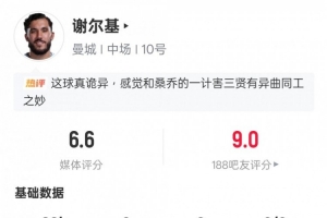 體育資訊2月9日訊 英超第25輪焦點戰,曼城客場2-1逆轉利物浦。謝爾基替補登場,1粒進球被吹,貢獻2次搶斷,3次地面對抗成功,1次爭頂成功,評分6.6。