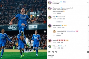 他也在賽后通過社媒曬出自己的激情慶祝照,并配文:“戰斗到最后一刻,這就是皇馬!送給爸爸的小禮物??。”