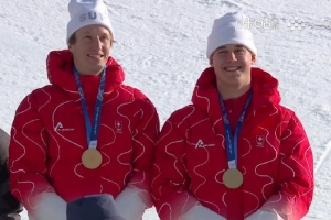 米蘭冬奧會高山滑雪男子團體全能回轉,瑞士隊的馮-阿爾門和內夫獲得金牌,馮-阿爾門兩天前奪得男子速降的金牌,成為本屆冬奧會的首金得主,他也是本屆冬奧會首個雙金得主。