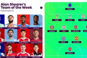 體育資訊2月10日訊 英超第25輪已經戰罷,阿蘭·希勒也評出了自己心目中的第25輪聯賽最佳陣容。