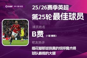 2025-2026賽季英超火熱進行中,體育資訊和咪咕體育聯合發起每輪英超最佳球員評選活動!第25輪評選結果已經出爐,曼聯中場B費當選!曼聯球員連續5輪斬獲此獎項,此前4輪分別是舍什科、B費、庫尼亞、卡塞米羅。