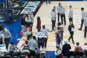 據(jù)國王記者Jason Anderson報(bào)道,第三節(jié)德羅贊怒摔水瓶,球場也被打濕了,工作球員趕緊清理。