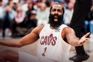 賽后,騎士官推發布贏球海報,封面直接是哈登坐在地上對裁判攤手的瞬間。
