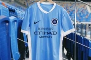 體育資訊2月10日訊 深圳新鵬城官方曬照,阿提哈德航空登上球衣胸前廣告位置。