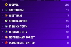 體育資訊2月11日訊 英超第26輪比賽,熱刺主場1-2不敵紐卡。Squawka統計了上賽季以來球隊在英超主場輸球的場次,并列出主場輸球最多榜單,狼隊20負最多,熱刺17負次席。