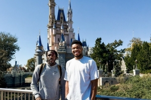 雄鹿官方社媒配文寫道:“兩個游玩迪士尼的大孩子。”