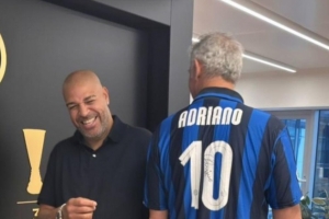體育資訊2月12日訊 前國米球星阿德里亞諾繼上周造訪國米訓練中心后,今天他又造訪了國米總部。一同前來的還有他的兩個女兒拉拉和索菲,以及前隊友托爾多。