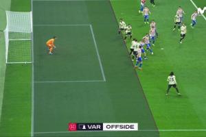 庫巴西第52分鐘亂戰(zhàn)中破門,VAR介入,經(jīng)過長時間審查后判定越位在先進(jìn)球無效。