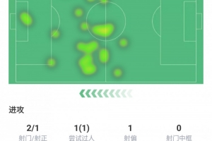 觸球34次、傳球26次成功率92.3%,傳中1次