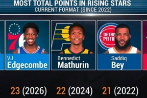 埃奇庫姆合計得到23分,自全明星新秀賽新模式以來(2022年)第二高,僅次于2023年的格萊姆斯。