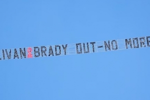 體育資訊2月14日訊 《郵報》報道,由于對西漢姆老板大衛·沙利文和卡倫·布拉迪長達15年的管理方式極其不滿,憤怒的球迷選擇在電視直播期間租用飛機,在球場上空拉起橫幅,直接打出“沙利文與布拉迪走人,不要再廢話了”的標語。