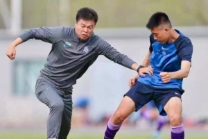 顧穎表示:“這是2023年4月,當時的津門虎一線隊教練組,和球隊最先組建的U17梯隊踢指導賽的一幕——李帥琪防守于指導。(注:標題圖)