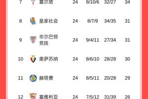 【完整西甲積分榜】