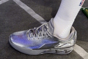 今日NBA全明星正賽日,勇士球星斯蒂芬· 庫里穿著安踏KT11銀色限定版亮相。