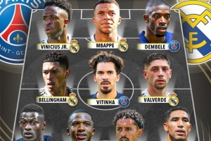 前鋒:維尼修斯(皇馬)、姆巴佩(皇馬)、登貝萊(巴黎)