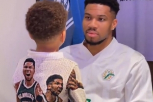 賽后,字母哥帶著他的兒子們向喜歡的球星索要簽名,他對兒子說道:“要努力訓練,這樣你們以后就能夠對陣文班亞馬了。”