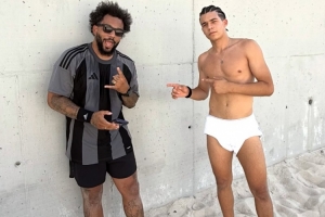 馬塞洛的兒子恩佐更新社交媒體,曬出了與父親一起打沙灘排球的相關動態,15歲的的恩佐身材精壯。