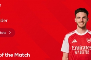 本場比賽賴斯送出1次助攻,4次搶斷,賽后他也當選英超官方球迷票選全場最佳球員。