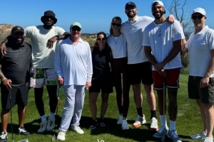 體育資訊2月19日訊 今日塔圖姆更新IG動態,曬出自己與詹姆斯、樂福一起打高爾夫的相關動態。