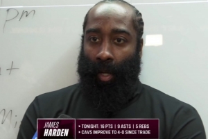 體育資訊2月20日訊 NBA常規(guī)賽,騎士以112-84戰(zhàn)勝籃網。賽后,哈登接受了媒體的采訪。