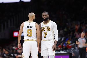 上半場比賽,凱爾特人10人輪換,并且全部得分,分別是杰倫·布朗13、豪澤9分、武切維奇7分、哈珀6分、謝爾曼5分、岡薩雷斯5分、科塔5分、沃爾什5分、懷特4分。