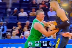 賽后采訪,完成勇士首秀的波爾津吉斯接受了記者采訪。談到自己和普理查德搶球,他說道:“我不會輕易放棄那個球的。當時我們落后很多,所以我的心情本來就不太好。但其實那只是和老隊友之間的一個有趣瞬間,只是開開玩笑而已?!?/p>