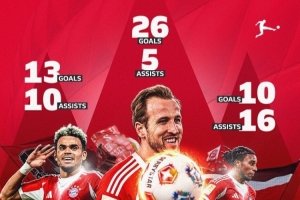 體育資訊2月20日訊 德甲官方更新社媒動態(tài),曬出拜仁鋒線三叉戟本賽季的聯(lián)賽數(shù)據(jù),配文:“拜仁擁有世界最佳鋒線三人組嗎?”