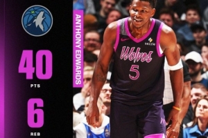 體育資訊2月21日訊 NBA常規賽,森林狼122-111力克獨行俠。愛德華茲出戰38分鐘,30中16,三分13中5,罰球4中3砍下40分6籃板1助攻1搶斷,正負值+17!