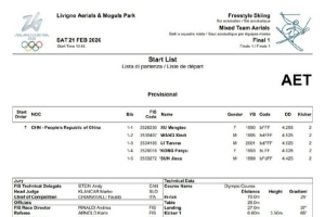體育資訊2月21日訊 米蘭冬奧會自由式滑雪空中技巧混合團(tuán)體賽決賽將于北京時間2月21日17點45分進(jìn)行,中國隊將于最后一位出場。