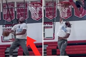 體育資訊7月9日訊 近日,尼克斯球星布倫森在訓練中完成一記舒展的大風車扣籃。