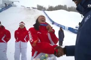 賽后頒獎(jiǎng)儀式上,徐夢(mèng)桃笑著用英語(yǔ)向頒獎(jiǎng)嘉賓調(diào)侃:這是我的第一枚奧運(yùn)會(huì)銅牌。