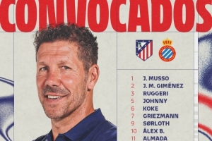 體育資訊2月21日訊 北京時(shí)間明天凌晨,馬競(jìng)將在西甲第25輪比賽中主場(chǎng)對(duì)陣西班牙人,馬競(jìng)公布了此役的球員名單。
