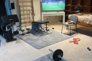比賽中他更新社媒,曬出自己在健身房看比賽的圖片,配文:第二節課,同時看比賽。加油,球隊!