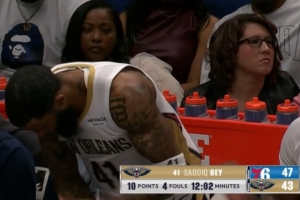 GIF-薩迪克·貝肘翻烏布雷被吹進攻犯規(guī) 兩節(jié)不到4犯了