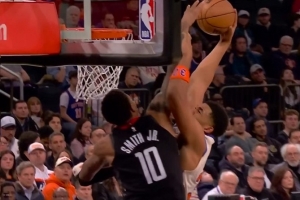 伊森防守漏人&推一把申京補(bǔ)防但77仍命中 申京撇嘴烏度卡攤手無(wú)奈
