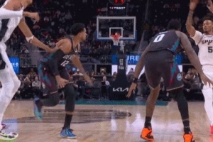 GIF-卡斯?fàn)栠B線文班內(nèi)線扣籃 馬刺開場11-2打停活塞