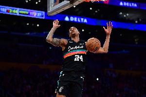體育資訊2月24日訊 NBA常規賽,馬刺上半場以57-55領先活塞。