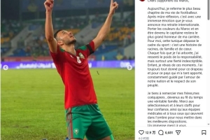 35歲的羅曼·賽斯司職后衛,他為摩洛哥國家隊出場86次,貢獻3球1助。他在Instagram發文如下: