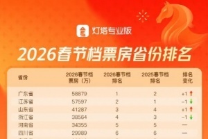 體育資訊2月24日訊?據燈塔專業版數據,廣東省2026年春節檔票房反超過去蟬聯5年的江蘇省,繼2019年后,再度登頂春節檔省份票房榜!