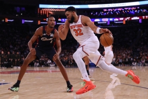 尼克斯本賽季至今戰績為37勝21負,場均得117.5分,場均失111.8分。上場比賽尼克斯客場105-99戰勝公牛,迎來兩連勝。唐斯28分11籃板,布倫森19分5籃板9助攻,約什·哈特11分9籃板5助攻,布里奇斯11分5助攻,蘭德里·沙梅特16分。近期尼克斯客場戰績上佳,近7個客場球隊拿到6場勝利。唐斯近3場比賽場均24.7分9.7籃板,投籃命中率58.7%,其中三分球命中率56.3%,表現極為優異。本賽季與騎士的兩次交鋒,尼克斯均在主場獲得勝利。本場尼克斯陣容齊整,常規出場球員中僅有麥克布萊德無法出場。