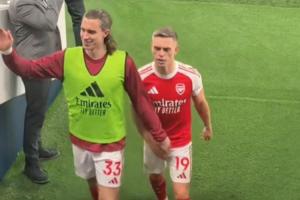 北倫敦德比阿森納客場4-1取勝,賽后有球迷在球員通道口拍攝到了一些有趣的畫面。