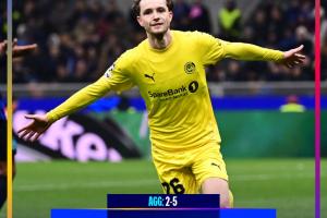 體育資訊02月25日訊 歐冠1/8決賽附加賽次回合,博德閃耀2-1雙殺國米晉級16強。