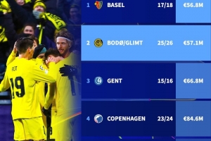 德國轉會市場盤點了近10個賽季闖進歐冠16強身價最低球隊排行,博德閃耀第二低,僅高于2017-18賽季的巴塞爾。
