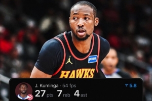 據(jù)統(tǒng)計,庫明加27分已經創(chuàng)造了老鷹球員隊史首秀替補出戰(zhàn)的得分紀錄!