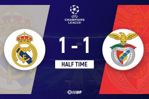 體育資訊2月26日訊 體育資訊2月26日訊 北京時間4:00,歐冠1/8決賽附加賽次回合皇家馬德里vs本菲卡,比賽在伯納烏球場打響!上半場,拉法·席爾瓦幫助本菲卡率先破門,僅2分鐘后瓊阿梅尼迅速還以顏色;居萊爾進球被判越位。半場結束,皇馬暫1-1本菲卡,總比分2-1暫時領先。