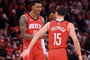 由于阿門(mén)因傷缺席,謝潑德頂替其首發(fā)出戰(zhàn),火箭首發(fā)五人為:謝潑德、伊森、杜蘭特、小賈巴里·史密斯、申京。