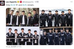 LoL賽事官方發布T1、GEN、BLG、AL戰隊選手合照,配文:只剩下LCK和LPL的隊伍了