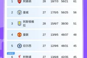 體育資訊02月28日訊 英超第28輪,維拉客場0-2不敵狼隊,目前多賽一場領先身后的曼聯3分,領先排名第6暫位歐聯區的利物浦6分。最新積分榜如下: